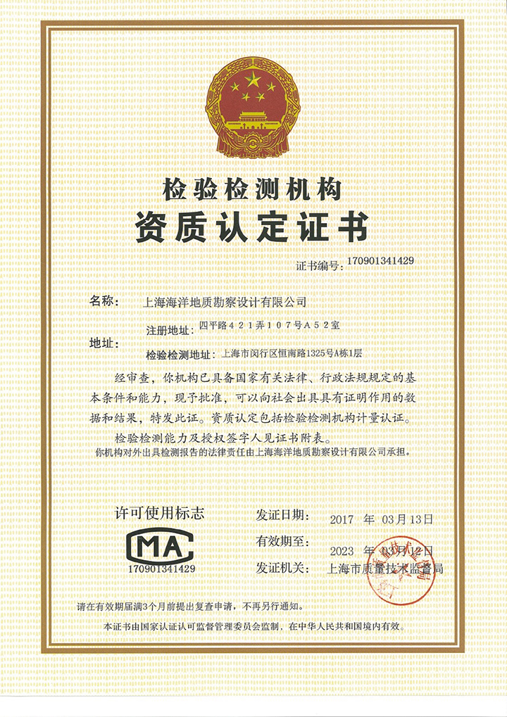 海洋公司計(jì)量認(rèn)證證書